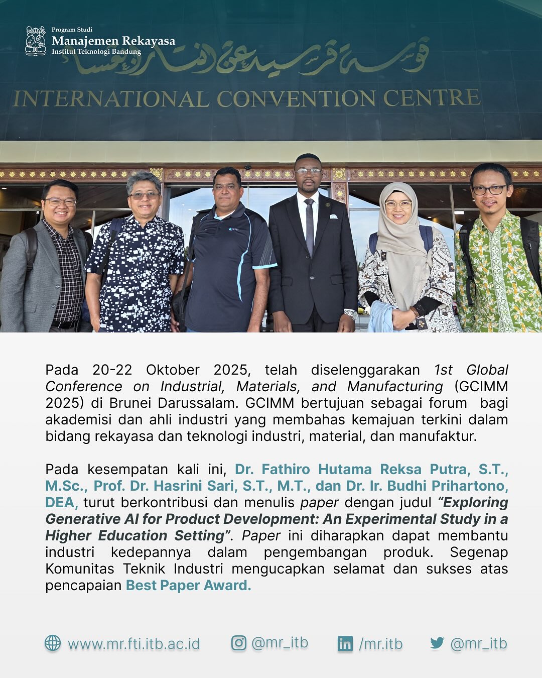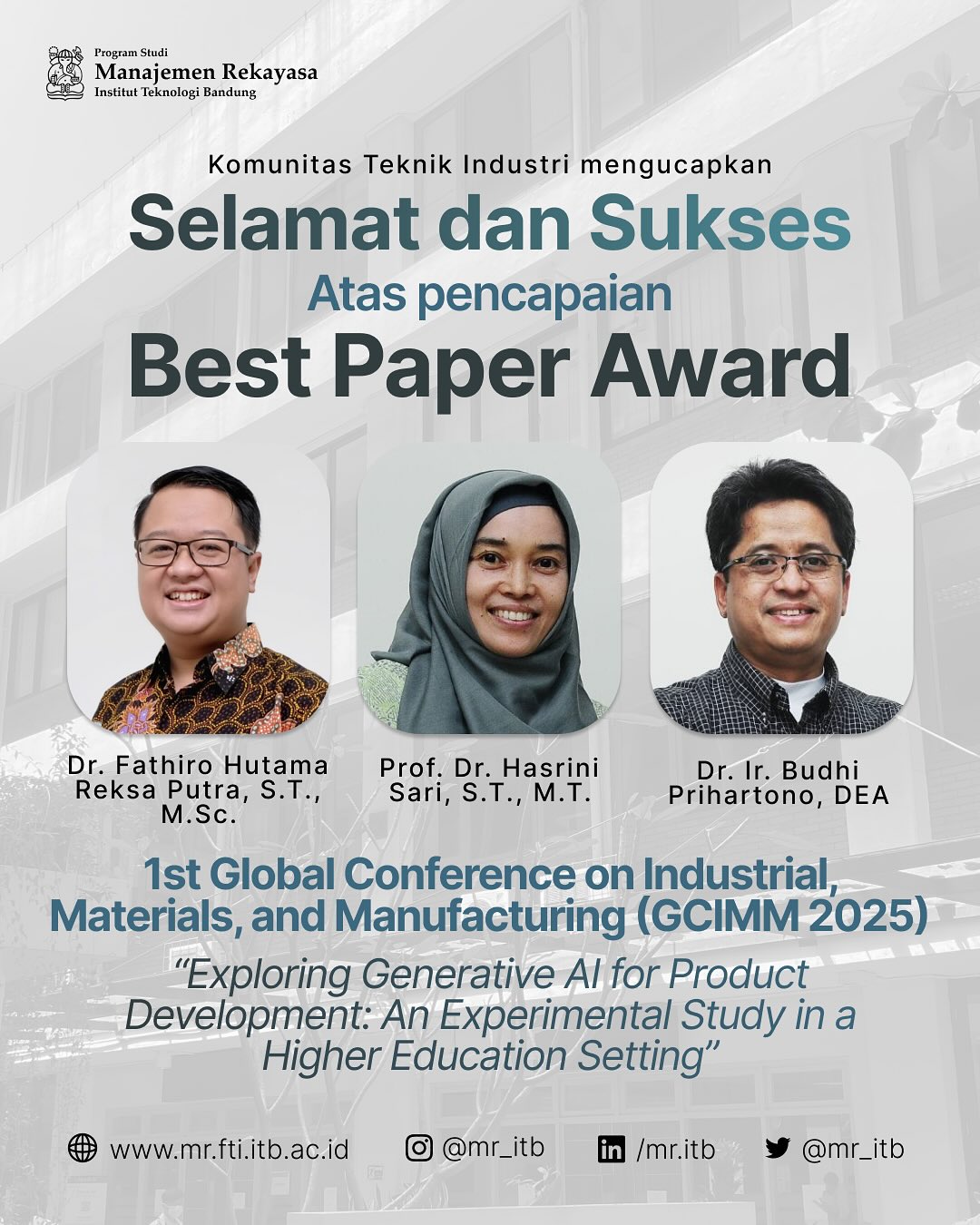 atas pencapaian Best Paper Awards dengan judul “Exploring Generative AI for Product Development: An Experimental Study in a Higher Education Setting”. Semoga pencapaian ini menjadi inspirasi dan membawa kontribusi besar bagi kemajuan ilmu pengetahuan dan pendidikan.